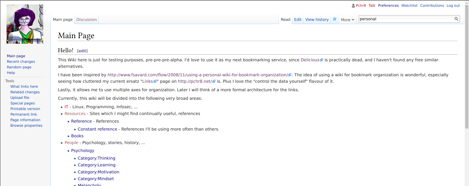 Since the social bookmarking site Delicious (old links page) is seriously falling apart (which is very sad, I liked it almost as much as I liked Google Reader) I started looking for other alternatives. For some time, I used WordPress LinkLibrary plugin until I felt the hard category system lacked flexibility (you can see on the “Links” page of this blog how cluttered and repetitive it is), I needed _tags _and more ways to organize the links and, possibly, the relationships between them.